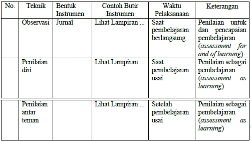 - Guru menyampaikan lingkup penilaian, yaitu … dan teknik penilaian yang akan digunakan, yaitu ….
